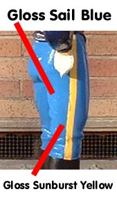 He is primed with standard automotive primer and then painted with standard oil-base enamel paint in the following color scheme: